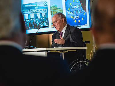 Am 11. Januar feierte die überparteiliche Europa-Union ihr 70-jähriges Bestehen mit einem zentralen Festakt in Berlin. Bundesfinanzminister Wolfgang Schäuble würdigte die Arbeit des überparteilichen Verbandes und sein Werben für die europäische Einigung. Europa-Union Präsident Rainer Wieland erinnerte an das politische Ziel der Europa-Union, die Schaffung eines europäischen Bundesstaates. „Diese Idee wird wirkmächtig bleiben und die aktuellen Herausforderungen und Probleme überleben“, so der Vize-Präsident des Europäischen Parlaments.