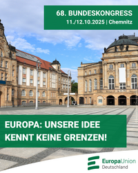 „Unsere Idee kennt keine Grenzen“ – so lautet das Motto des 68. Bundeskongresses am 11./12. Oktober in Chemnitz, bei dem die Europa-Union Sachsen zugleich ihr 10-jähriges Jubiläum feiert. Das…