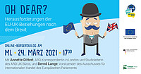 Bringen Sie Ihre Anliegen und Fragen ein bei unserem Online-Bürgerdialog „Oh Dear? Herausforderungen der EU-UK-Beziehungen nach dem Brexit“ und treten Sie in den virtuellen Dialog mit Annette…