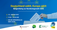 "Deutschland wählt, Europa zählt! Bürgerdialog zur Bundestagswahl 2025" am Mittwoch, 22. Januar 2025 von 19 Uhr bis 20:30 Uhr über…