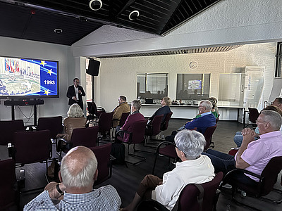 Sehr sachkundig, überzeugend und kurzweilig trug am Donnerstag im EuropaHaus Bocholt der Journalist und Politologe Ingo Espenschied dem interessierten Publikum vor. Espenschied war auf Einladung des edic am Mittwoch und Donnerstag in zwei Bocholter Gymnasien mit diesem Vortrag vormittags erfolgreich unterwegs. Immer wieder konnte er mit noch nicht so bekannten Details das Bild abrunden, welches die bewegte Vergangenheit in Europa bis heute zu einem der spannendsten Kontinente machte und macht.