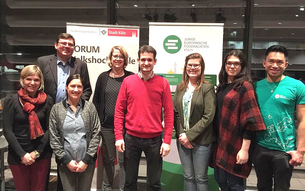 Fachliche Akteure der Veranstaltung im World-Café Format waren: Leitung - Henrike Viehrig (VHS Köln). Mit Hans Stein (Leiter der Landesvertretung NRW in Brüssel), Anne Gödde (Europa-Union und FINE Uni Düsseldorf), Birgit Bujard (Europa-Union und Deutsche Gesellschaft für Online-Forschung), Mirja Schröder (Europa-Union und Universität zu Köln) und Tobias Kunstein (Europa-Union und Universität zu Köln).